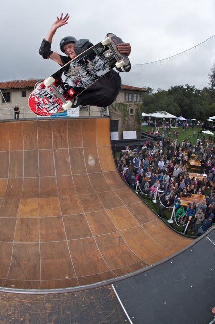 Tony Hawk flies a frontside air during the Vert Demo at Tony Hawk: SHRED Presents Stand Up For Skateparks, 10/17/10, Beverly Hills, CA. Photo by Jody Morris