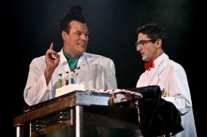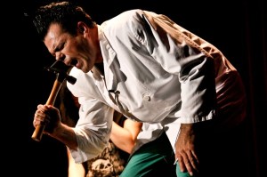 I attended the Rudy Coby Experiment at the El Rey Theater in Los Angeles last night. The show was mind boggling and visually stunning. Sometimes funny, sometimes creepy and occasionally gross (at one point he hammered a nail into his face)…but always entertaining! Hypnotron 2000, Elvis, bombs, ESP, dangerous card tricks, stretching limbs and scary clowns- this is a show you have to see!