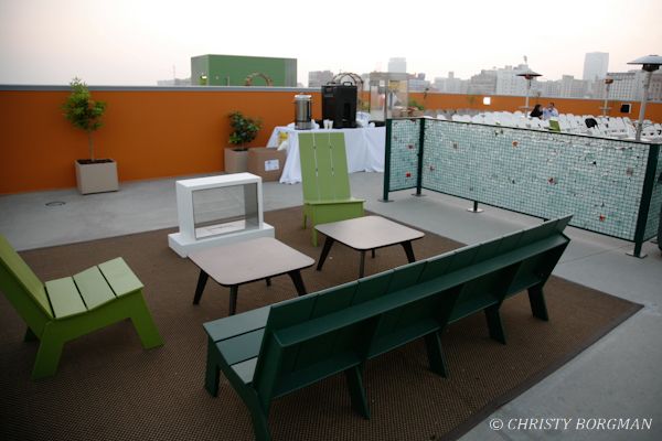 URM rooftop furniture made from recycled milk crates