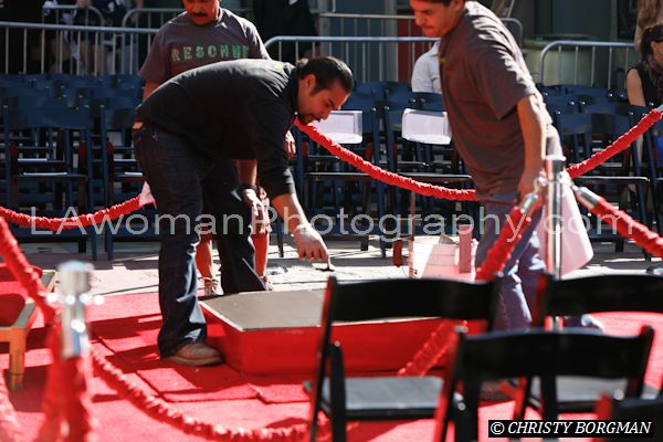 Preparing the cement Mickey Rourke’s Hand and Footprint Ceremony at Grauman’s Chinese Theater