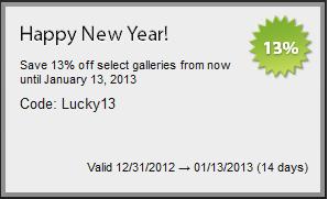 Happy New Year! Save 13% off in select galleries. #Lucky13