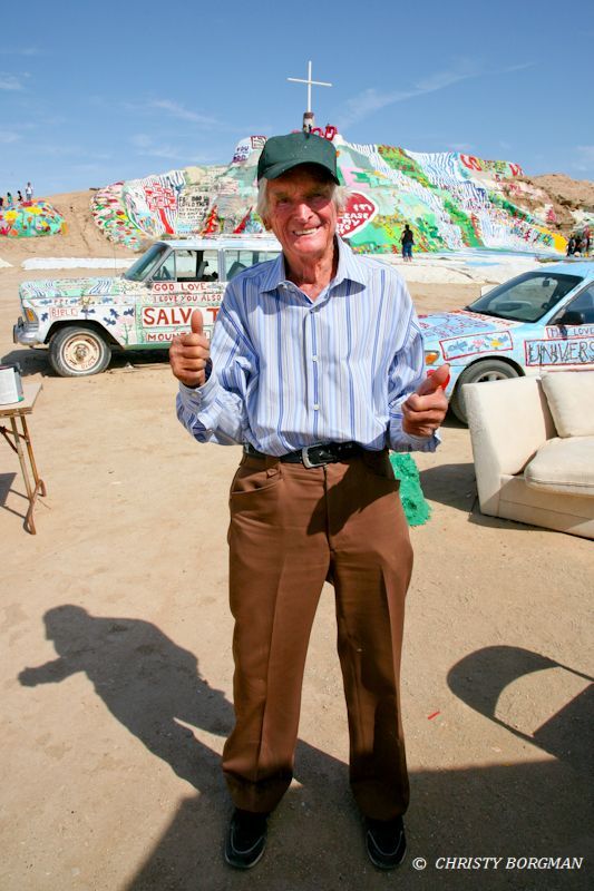 March 20, 2010 Leonard Knight at his creation- Salvation Mountain in Niland, CA
