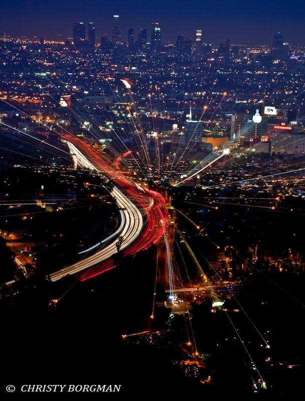 June 21, 2009 Hollywood freeway and Downtown LA from Mulholland Drive in Los Angeles, CA