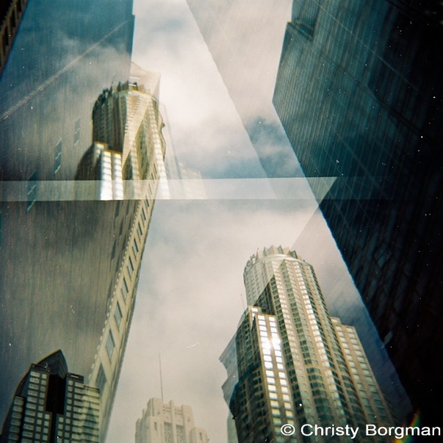 July 31, 2010 Looking up in downtown with my Diana F+ lomography camera, Los Angeles, CA