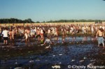 Reality set in on day two when I was jolted awake from my tent by a man yelling “Hear ye, hear ye! Don’t drink the water!” He was walking through the tent area spreading the word that the water lines were contaminated, showing the town newspaper with the headline news. At $4 a bottle, that soon became a problem. We got to the Spitfire stage super early to be up front for Perry Farrell’s DJ set and we made friends with the security guards who kept filling up our water bottles for free. At some point on day two, the folks in charge of picking up the trash and recycling seemed to have given up. The porta-potties were the bane of our existence and the ATMs ran out of cash. We waited in line and were able to phone home before the row of pay phones were all broken. Also at some point on day two, I realized it was a bad idea to be a mud person…especially since an open drain ditch seemed to be the only shower at Griffiss Park. Live and learn!