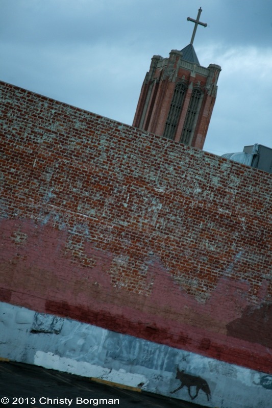 October 28, 2013 Coyote art and the First Presbyterian Church. Hollywood, Los Angeles, CA