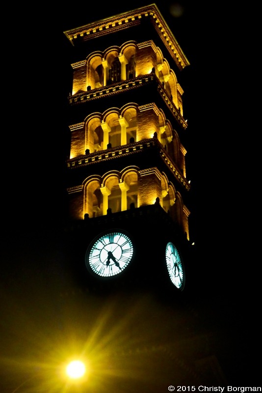 February 20, 2015 Nocturnal “sun” on St Andrew’s belltower clock in Pasadena, CA