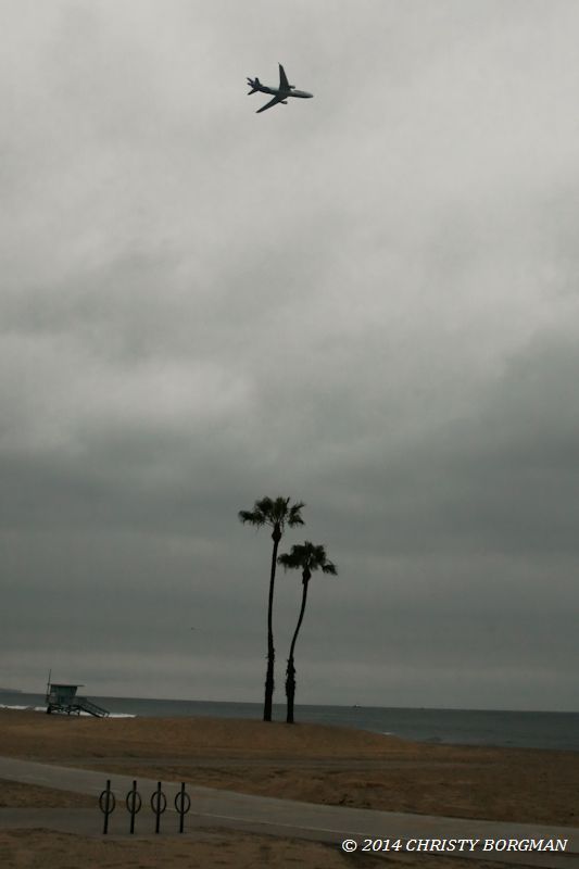 May 24, 2014 Plane, Palm trees and the Pacific at Dockweiler Beach, Los Angeles, CA