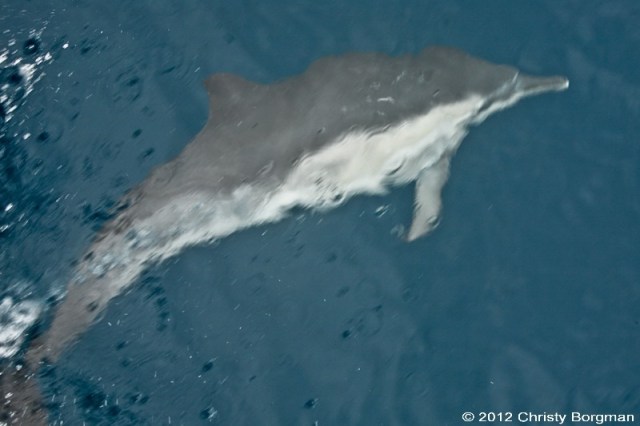 August 25, 2012 Overhead view of dolphin cruising by near Long Beach, CA