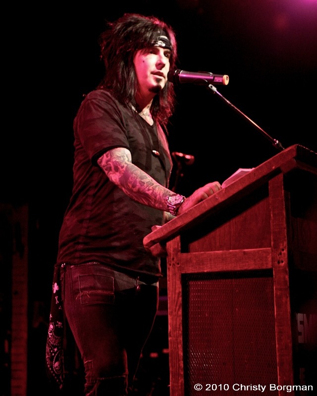 August 26, 2010 Nikki Sixx speaking at the ceremony for Slash during SSMF2010 at House of Blues in West Hollywood, CA