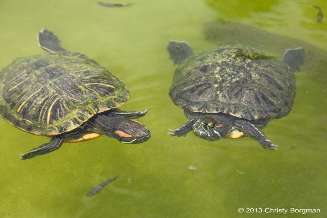 July 28, 2013 Two turtles floating at Greystone Mansion in Beverly Hills, CA