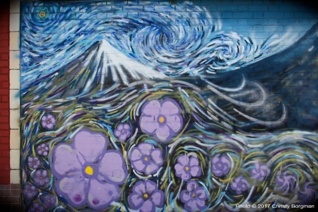 March 14, 2017 Mural with a Starry Night mountain vibe by Artoon Art in East Hollywood, Los Angeles, CA