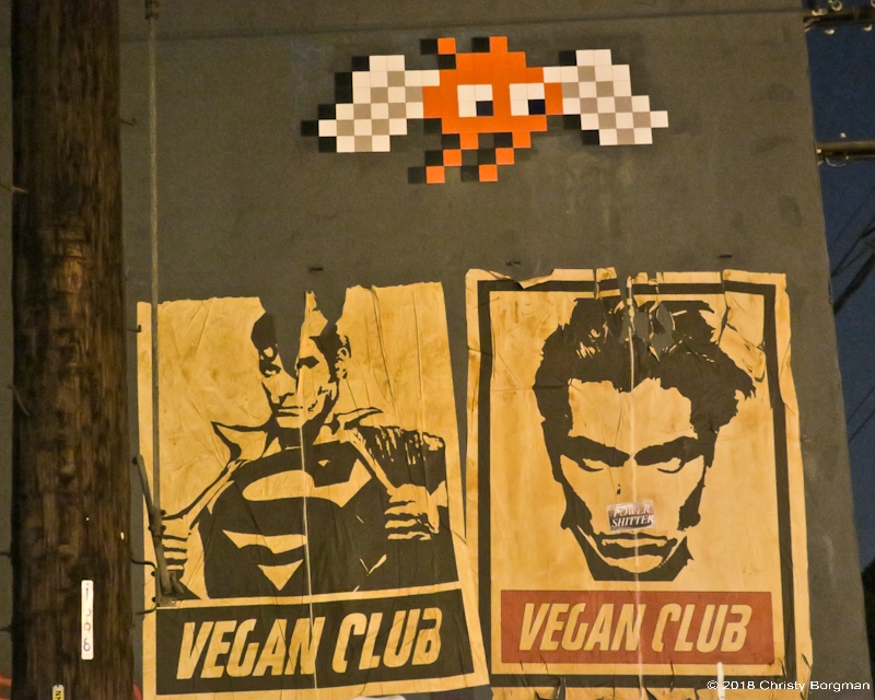 November 24, 2018 Superman and River Phoenix vegan club art in the Arts District, Los Angeles, CA