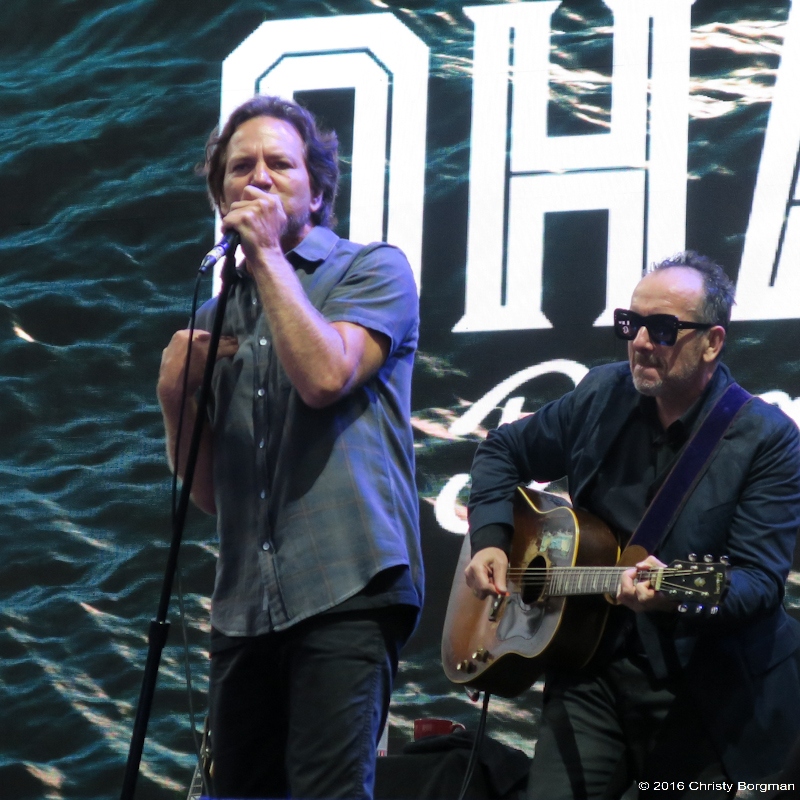 August 27, 2016 Eddie Vedder and Elvis Costello at Ohana Festival in Dana Point, CA